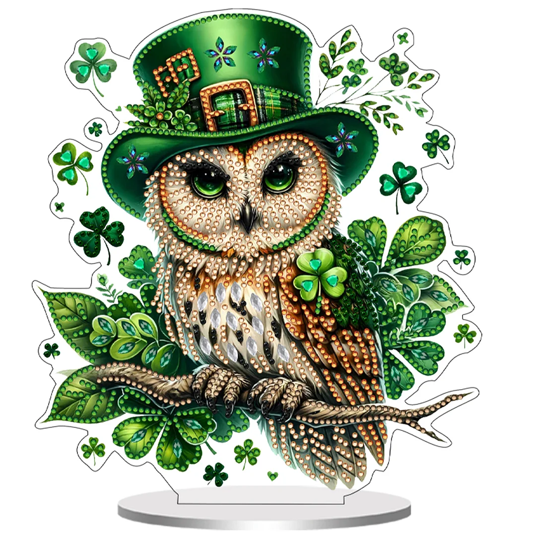 2D flache DIY, St. Patricks Day Eule, Diamantmalerei, Tischdekoration, Spezialform, Kristallkunst, Basteldekoration, einseitiger Bohrer für Wohnzimmer