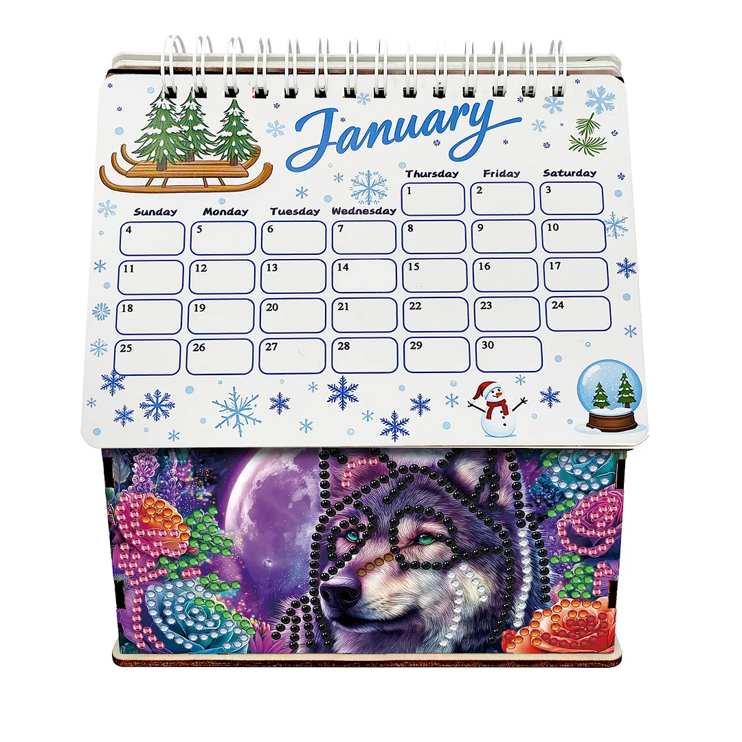 5D/DIY Kalender Kristallmalerei Schreibtisch Kalender Kit Heimdekoration (Wolf)