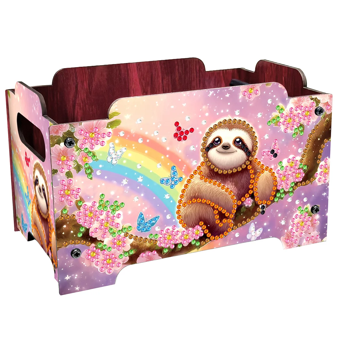 5D DIY Diamond Painting Kunst dekorative Aufbewahrungsbox Holz Lagerung Clutch (Faultier)