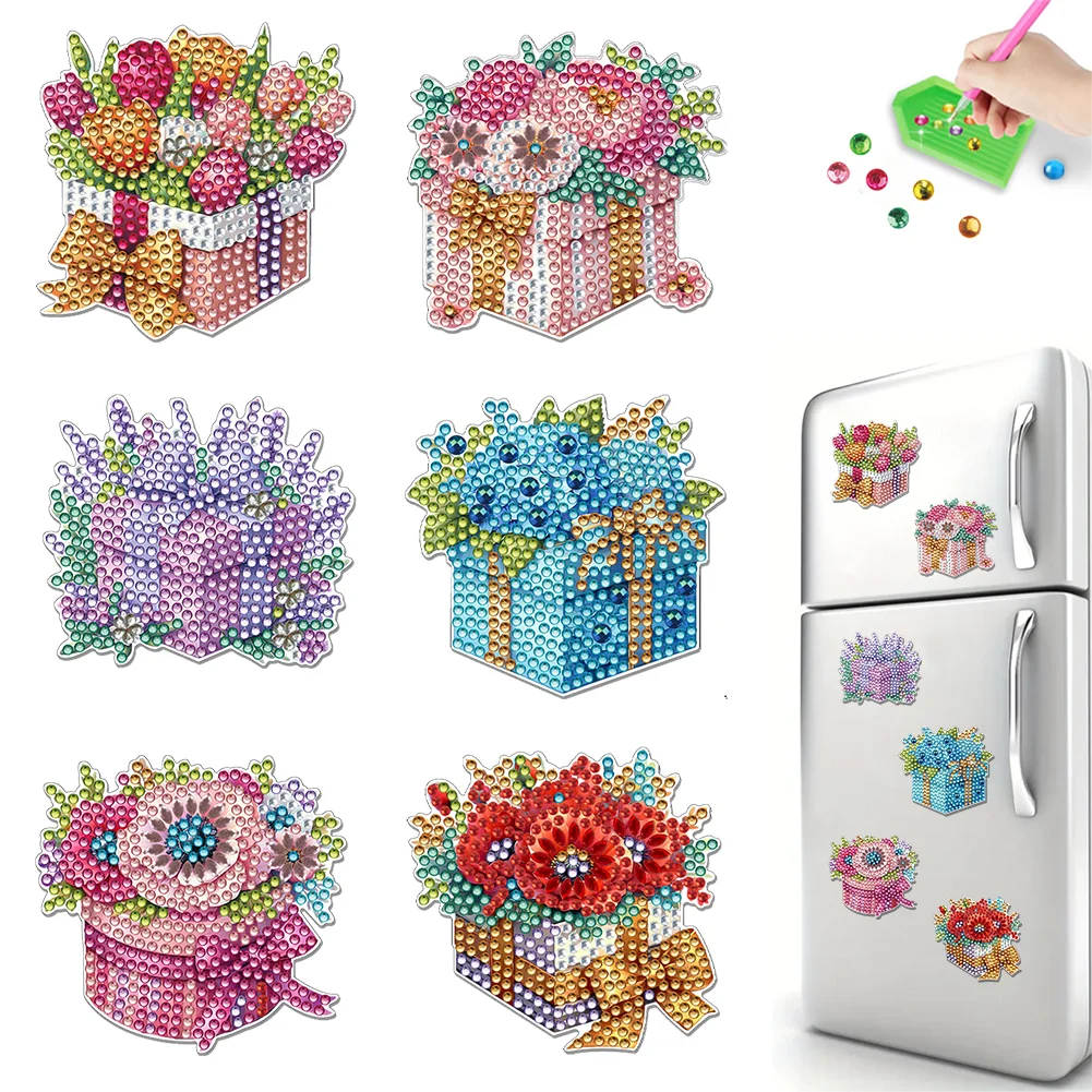 6Pcs Diamond Art Kits Kühlschrankmagnete Diamond Art DIY Diamond Art Kühlschrankmagnete DIY Kunst Kunsthandwerk für Erwachsene Anfänger
