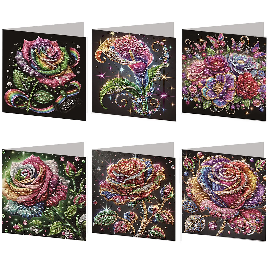 6 Stück Rose DIY Diamant Kunst Grußkarten Dankeskarten und Feiertagssegen