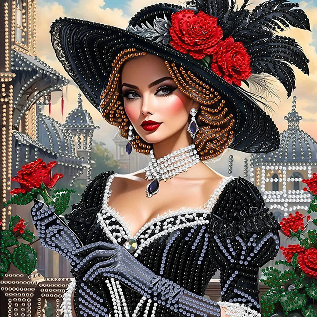 Schönheitsdame mit Zylinder, speziell geformte 5D-DIY-Teilbohrer, Diamanten, Punkte, Edelsteinkunst-Kits für Erwachsene, Anfänger, Wohndeko, Diamanten