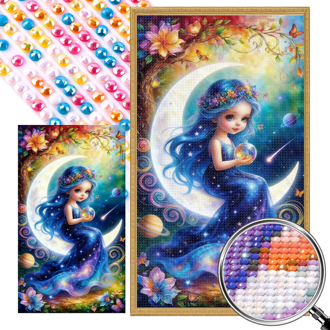 Blauhaariges Elfenmädchen DIY, teilweiser Bauch, Vollrundbohrer, Diamanten, Punkte, Edelsteinkunst-Kits für Erwachsene, Anfänger, Wohnraumdekoration,
