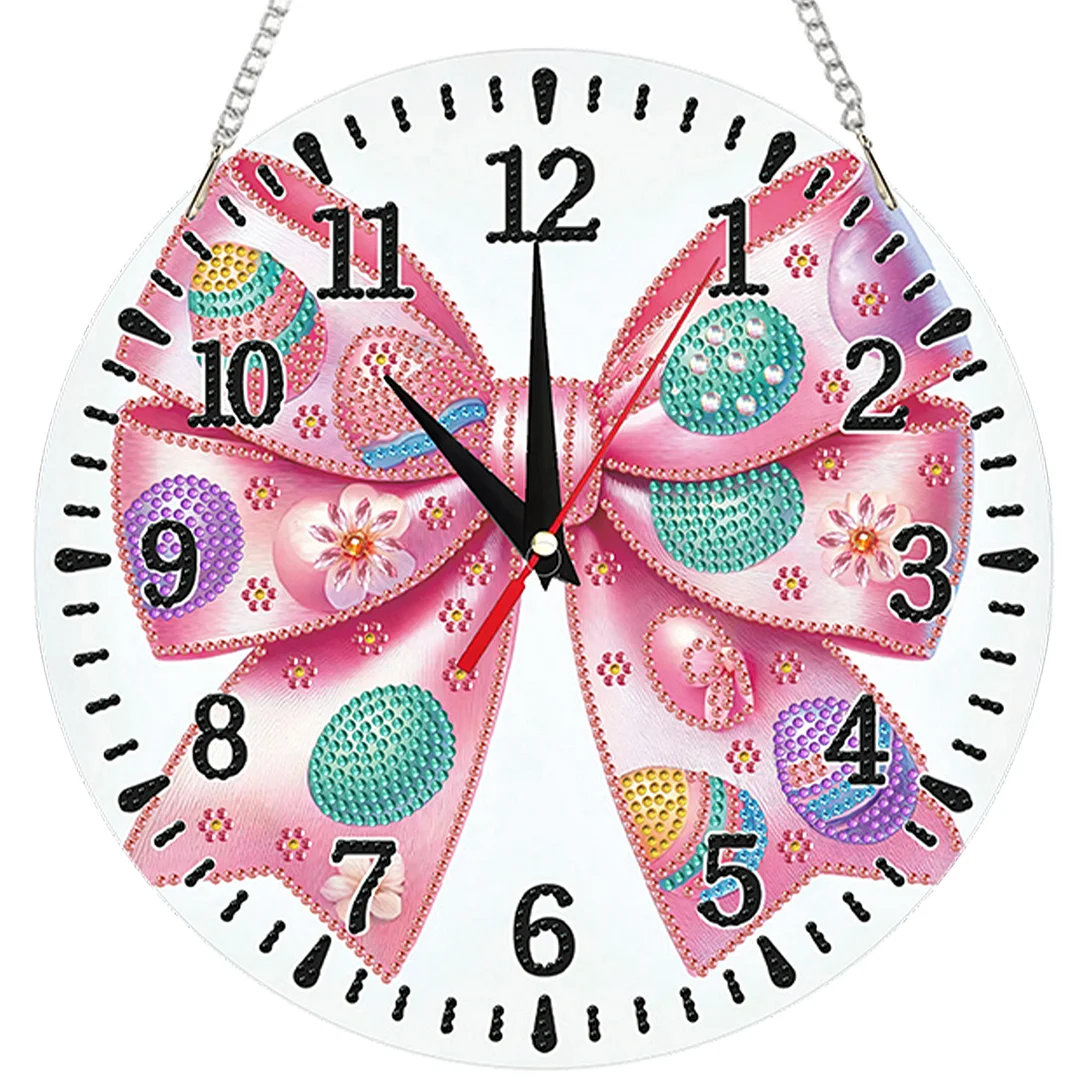 Bogen-2D-Flach-DIY-Acryl-Diamantmaler-Uhrenanhänger mit Uhrenfunktion 9,65x9,65 Zoll für Wände oder Fensterdekorationen zu Hause