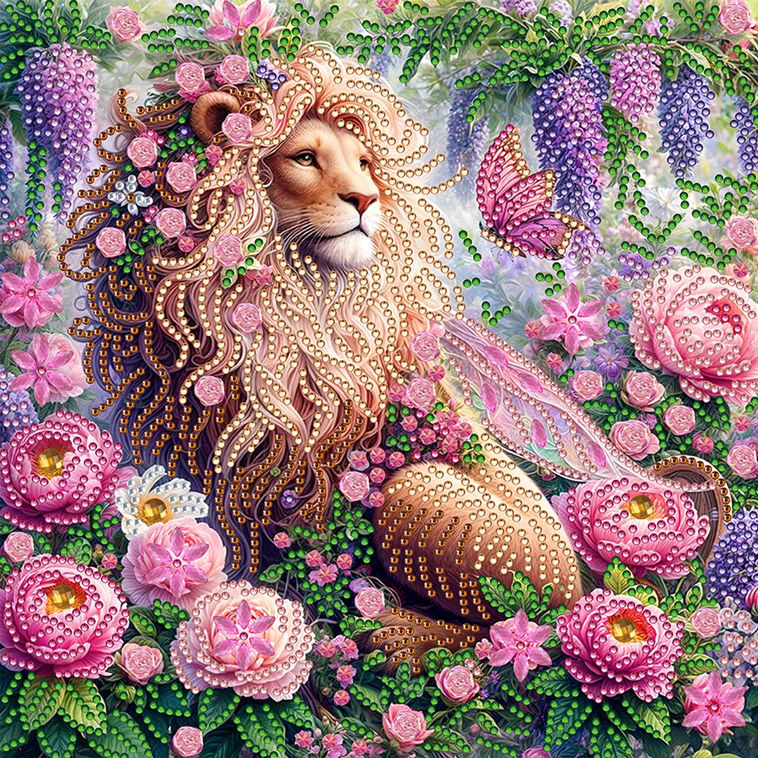Löwe speziell geformte 5D-DIY-Teilbohrdiamanten Punkte, Edelsteinkunst-Kits für Erwachsene, Anfänger, Wohnraumdekoration, Diamanten, Gemälde, Edelstei