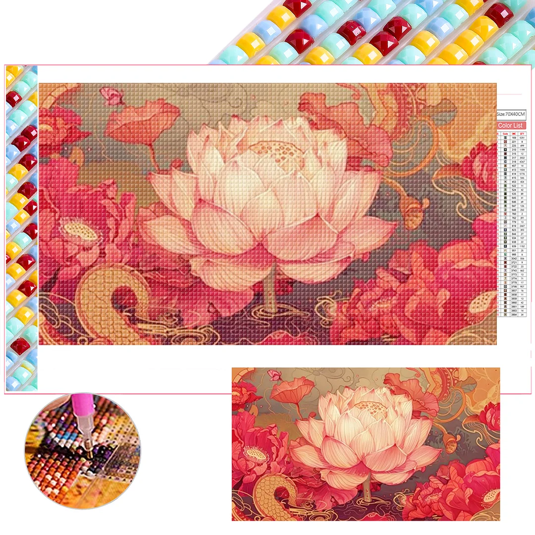 Lotus 5d DIY quadratische Diamant Kunst Malerei Sets voller Bohrer Dimond Art 75x45cm