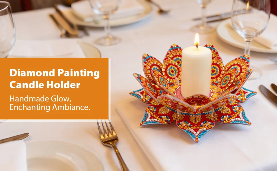 Oranger Lotus-Kerzenständer, DIY, Diamant-Kunstschreibtisch-Ornamente für Erwachsene, Schlafzimmerdekoration für Erwachsene