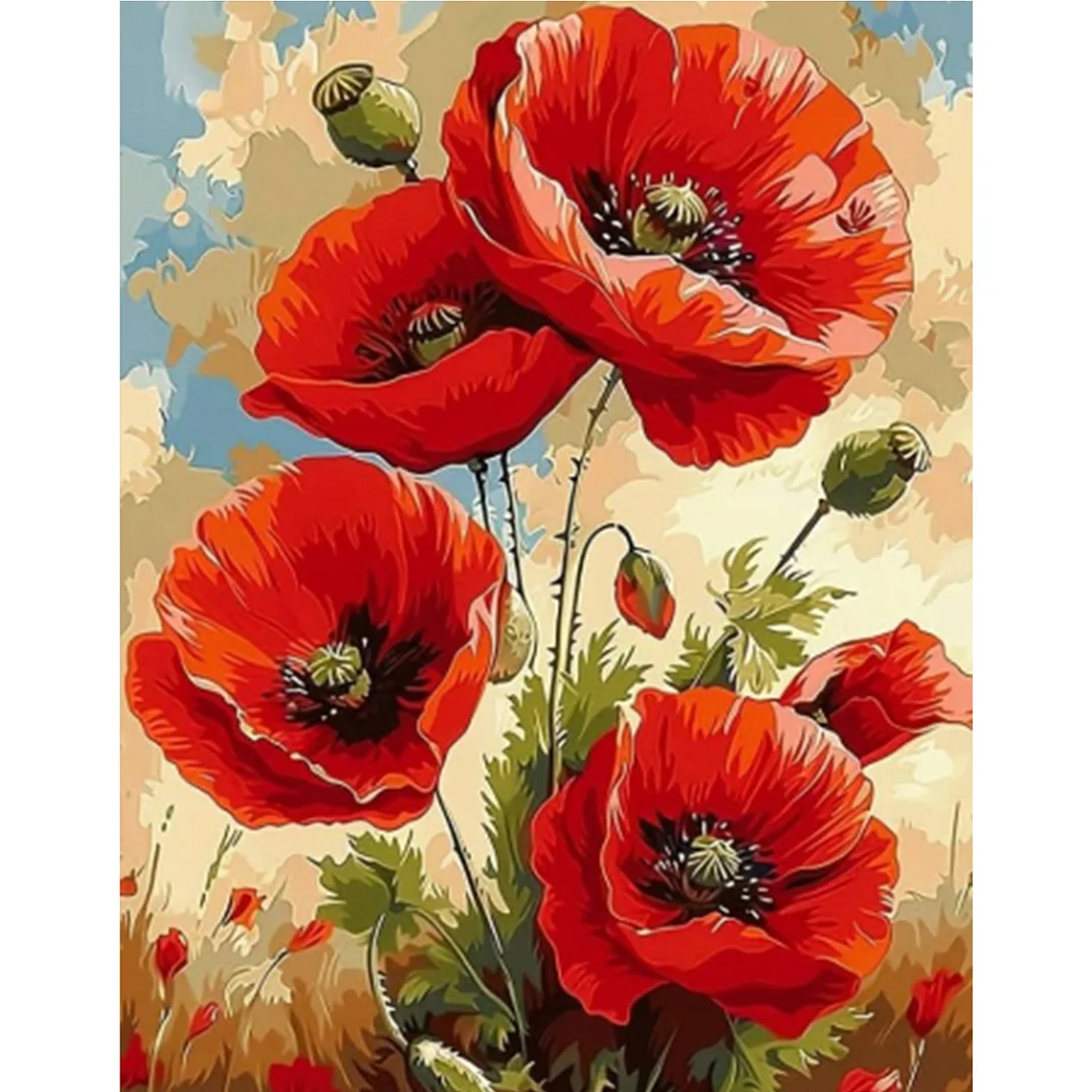 Poppy 5d DIY runder Vollbohrer Dimond Gemälde Kit für Zuhause Wanddekoration35x45cm