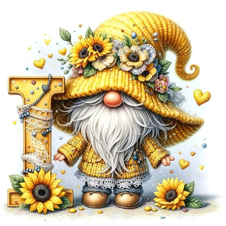 Zwerg Buchstabe I mit Sonnenblume - runder Bohrer Diamantmalerei - 40*40cm
