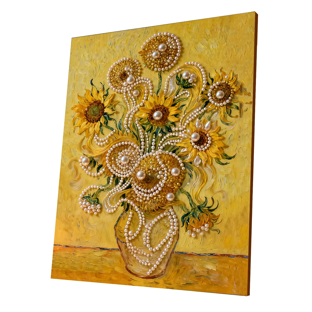 Sonnenblumenvasen-DIY-Perlen-Malset für Wohnwanddekoration 40x50 cm mit Rahmen