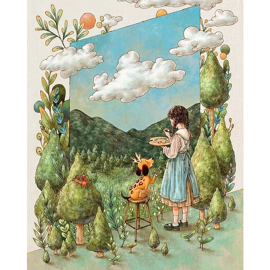 Süßes Mädchen komplette DIY-5D-Runden-Bohrer, Diamant-Gemälde, Bildkunst, Bastelarbeiten für Erwachsene/Anfänger, Geschenkidee für Hauswanddekoration,