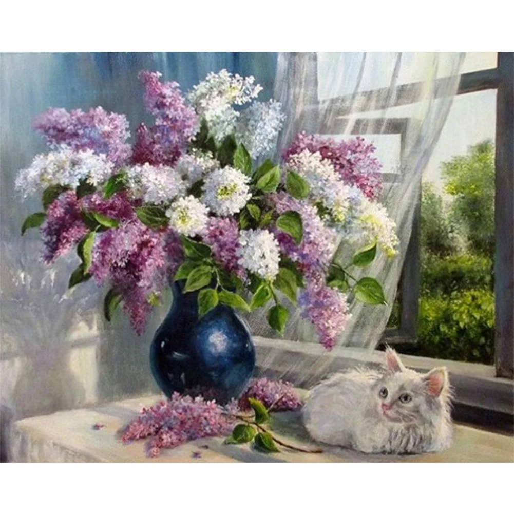 Fensterbank Lavendel Vase - runder Bohrer Diamantmalerei - 60*50cm (große Größe)